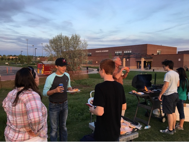 A big thanks to Grandpa Jim and Grandma Janet for the hot dog and hamburger donation for the first ever high school bonfire and cookout last week at school. Of course Mrs. Roth was one of the sponsors/adult supervisors for the night and somehow I ended up there and supplied more chips and drinking water. Noah used his mad grilling skills for cook the food. Overheard quite a few kids say how much fun it was and maybe one of the funnest things they had done as a school all year.