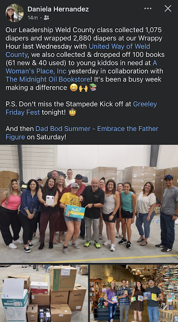 Where is 2024 going? Here we are already half way through June. Been a busy first half of the month with ribbon cuttings, Rotary meetings, some love on Facebook for myself and ALLO, and many little blessings throughout the days including the 6th Anniversary party at 477, some little horses at a ribbon cutting, a turtle on a morning walk at Bittersweet, the June edition on the Mob Mixer, our Leadership Weld County class project at the United Way diaper Bank, and stying a hat for Dad Bod Summer with the DDA.